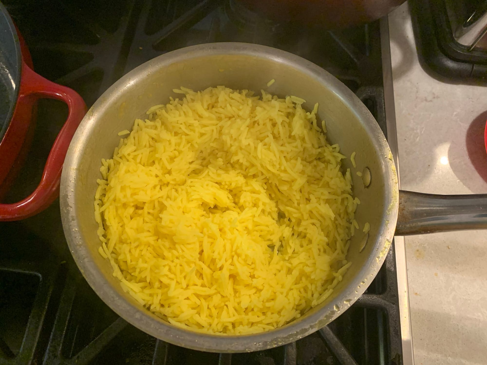 I have a lot of recipes left to work through, but I feel confident in saying that this might be the best dish I've had out of the Tomb Raider Cookbook! Such a flavorful, rich sauce that wasn't hard to do at all, yet felt like you'd simmered it for hours. It absolutely had to be absorbed by that gloriously yellow rice and some warmed up naan. I stirred all the leftovers together as they cooled so they'd meld perfectly for lunches the rest of the week.