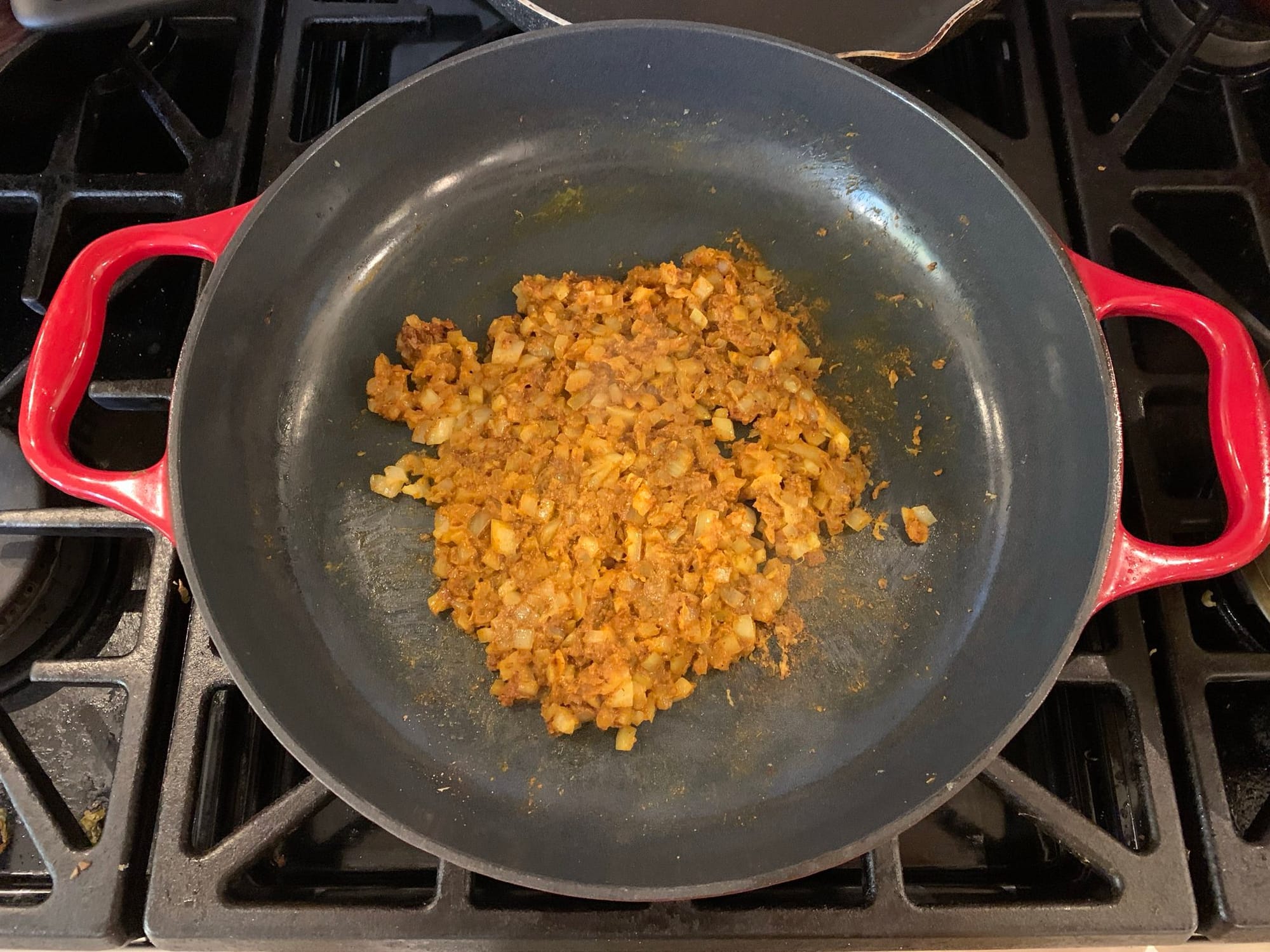 Lastly, the recipe says to use either ginger garlic paste, which is equal parts of both ingredients pureed together, or grate the same amount of each. I did the latter. If I made Indian food more often, I'd invest in those ingredients.