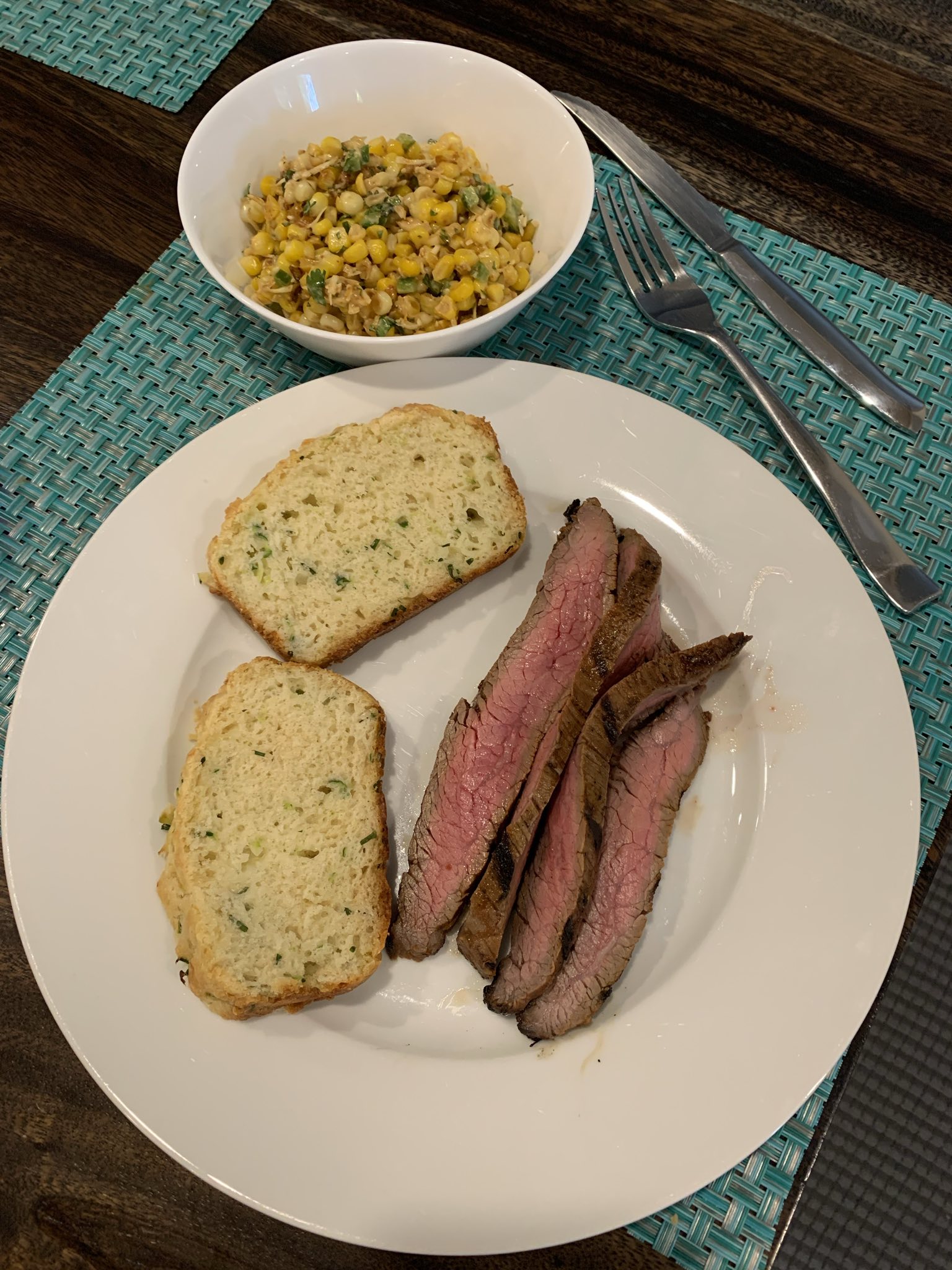 If you want to make this recipe for Esquites yourself, you can find it in Tomb Raider: The Official Cookbook and Travel Guide. The recipes I used for the steak and bread were Simply Recipes’ Grilled Chili Lime Flank Steak (recipe here) and A Pretty Life in the Suburbs’ Zucchini, Cheddar Cheese & Chive Buttermilk Quick Bread (recipe here).