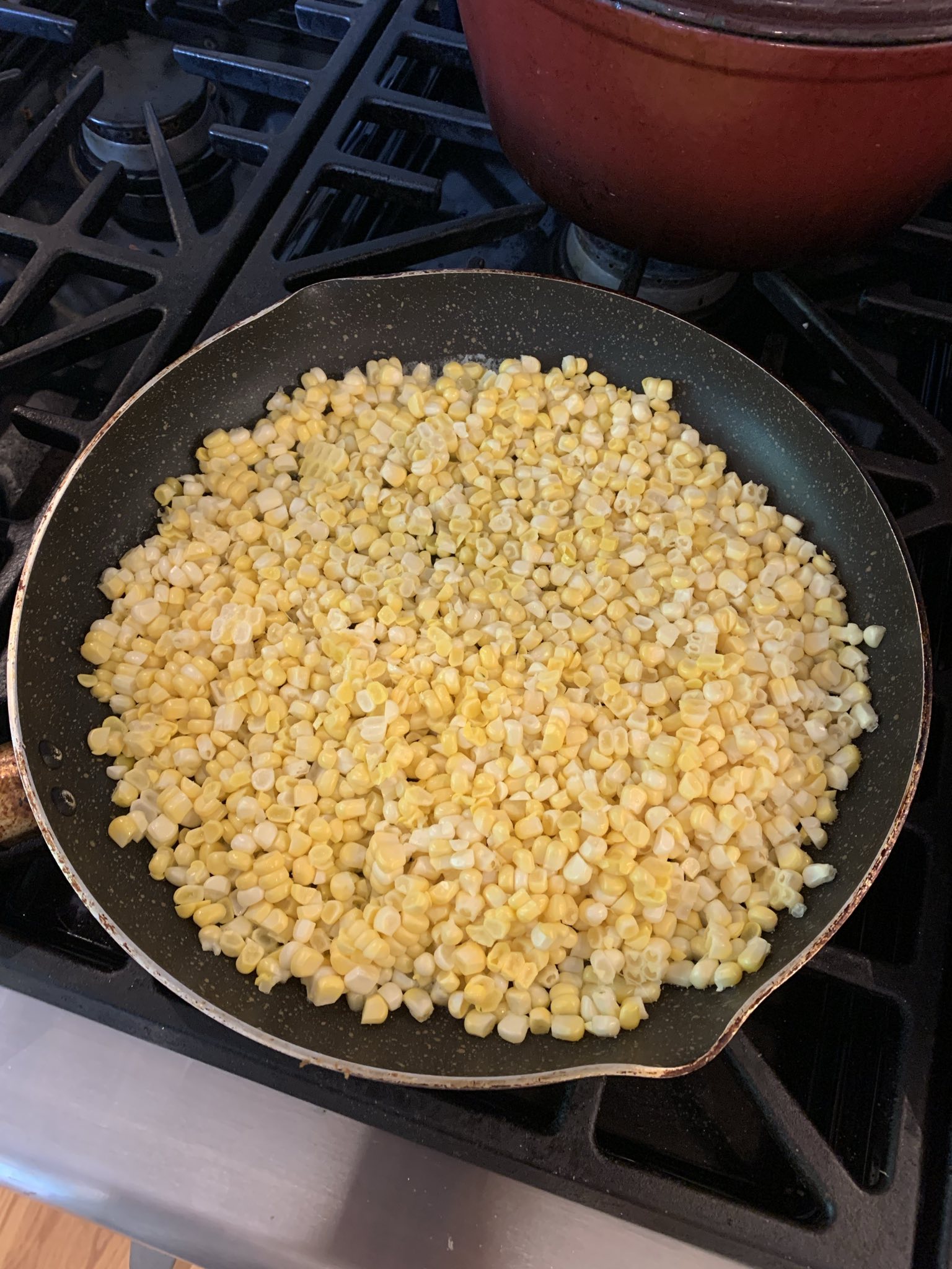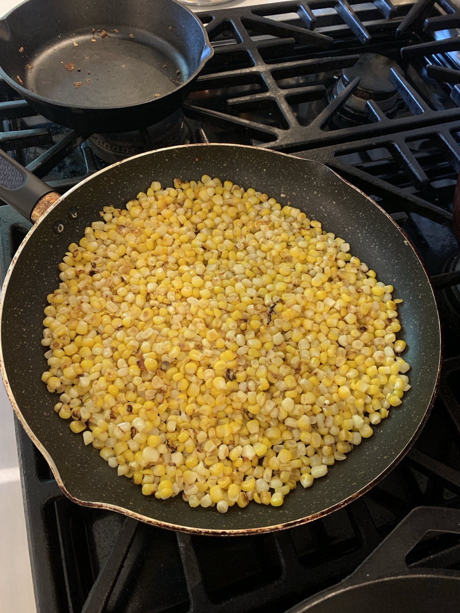Traditionally, you use Cotija cheese with elote anything. I’ve made esquite-style corn (with alterations) many times before and was previously never able to find Cotija, so this time I really wanted to. On my last in-person grocery run, I didn’t find any, so I resorted to ordering a grocery delivery with it and some ingredients for other recipes. The night I cooked these Esquites, I served them with grilled flank steak and a cheddar zucchini bread. Cotija is a great choice, it reminds me a lot of Parmigiano and Pecorino, not quite as sharp, but still firm and flavorful. Definitely use it if you can find it. If not, Parmigiano or feta will suffice as substitutes.