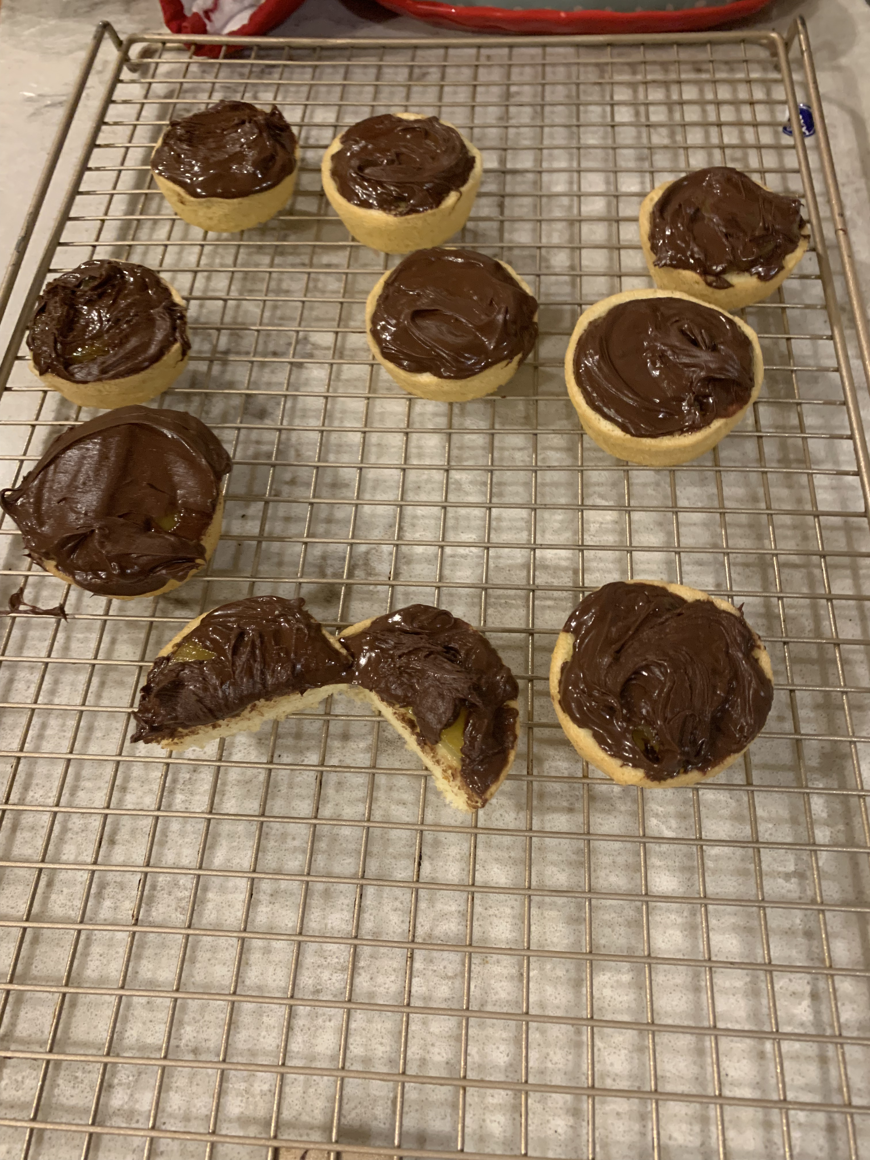 In any case, my British friends were intrigued as to how these would turn out compared to the store bought kind of Jaffa Cakes. I made them on New Year’s Eve 2023, well before any of the other Tomb Raider recipes. You make an orange jelly ahead of time, and then cook the Genoise sponges in a muffin pan/tin, then you cut a circle of jelly to fit the top of the cakes, and top that with melted chocolate chips before leaving them to set. The cookbook’s recipe for them causes them to be more fluffy and cake-like than I think Jaffa Cakes really are. Not that I’m complaining, because they were very tasty! I see why they’re so popular.