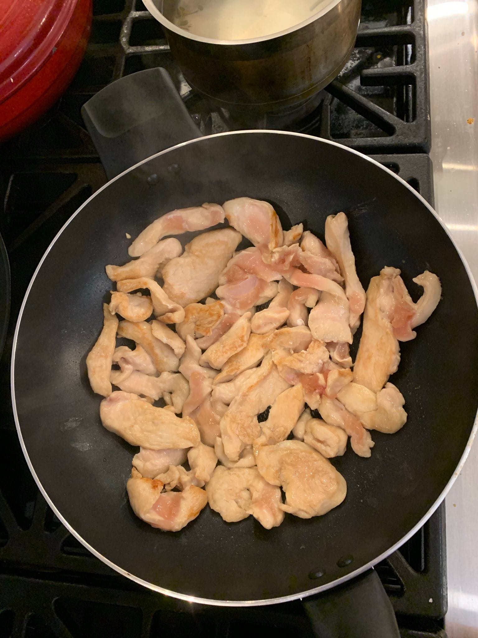 To semi-emulate the short length of the rice pin noodles, I chopped the Udon into cubes and then did my best to rather clumsily unfurl them from each other. For scale, I used 400g worth of Udon, or two of those vacuum-sealed packages. Whatever I couldn't loosen by hand without breaking, I let unravel with the heat.