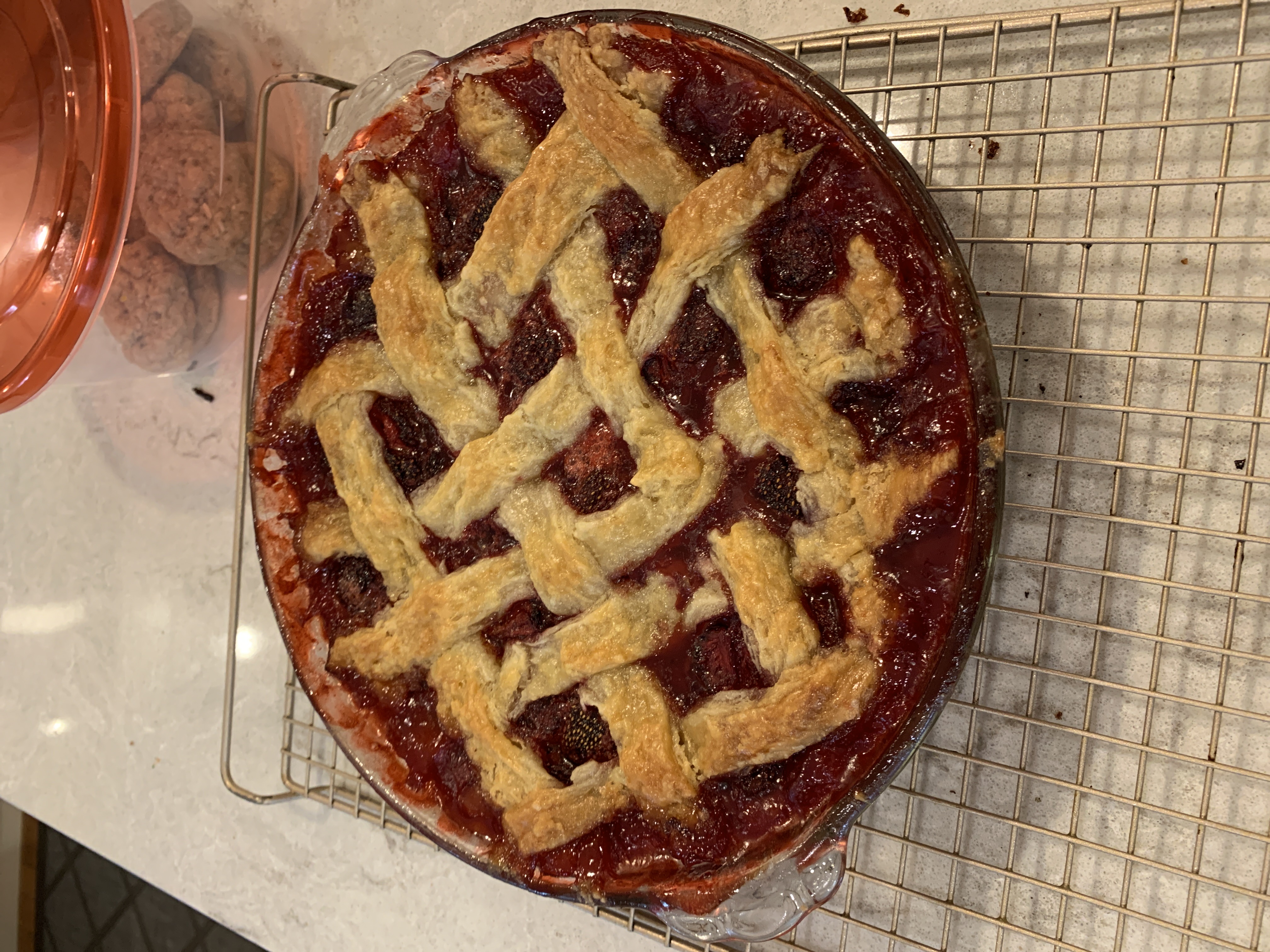 Having followed the recipe up to this point, you can see in the above photo that the filling overflowed. Where I went wrong was in the positioning of the pie in the oven, and not properly forming the crust or sealing the lattice over top. I even forgot that you’re supposed to weave the lattice from top to bottom and had to redo it. With the pie done at least according to the recipe, I decided to let it cool completely and hope for the best. The edges would be covered with whipped cream in the end, so no one would know.