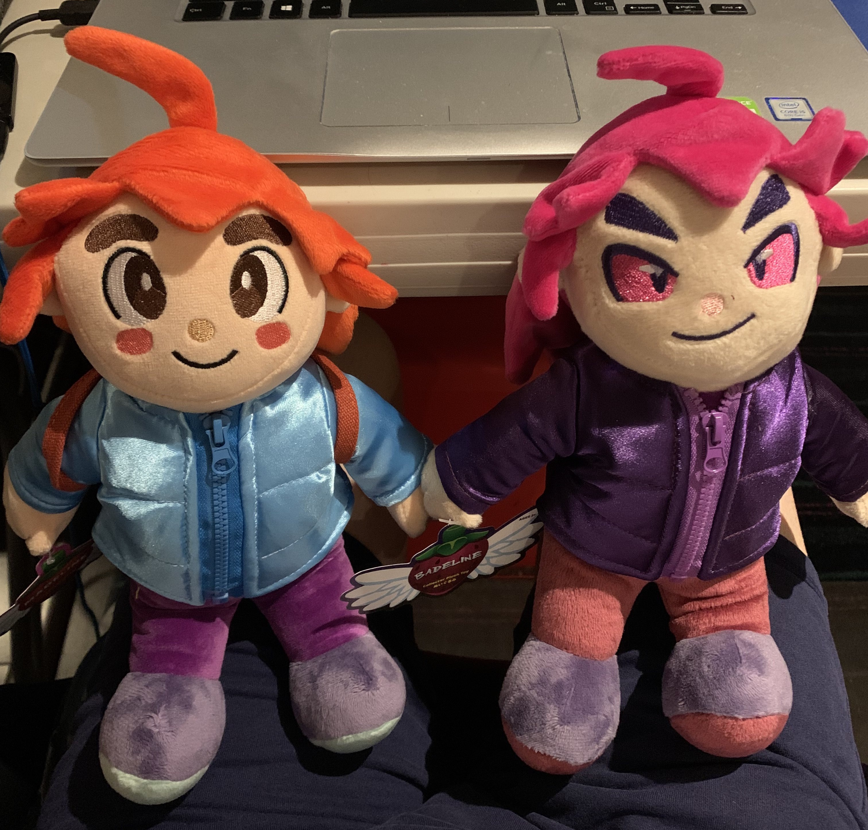 If it weren’t, I wouldn’t be interested. As an achievement hunter, I sought to unlock every single achievement, and this required playing the B and C-Sides, extremely challenging obstacle courses where one wrong move means starting over completely. Through practice, patience (which I lack) and persistence (which I have in abundance), I conquered both, and rewarded myself with the official Fangamer plushies of Madeline and her manifested doppelganger, Part of Me, better known as Badeline. The best part is that they have magnets so they can hold hands.